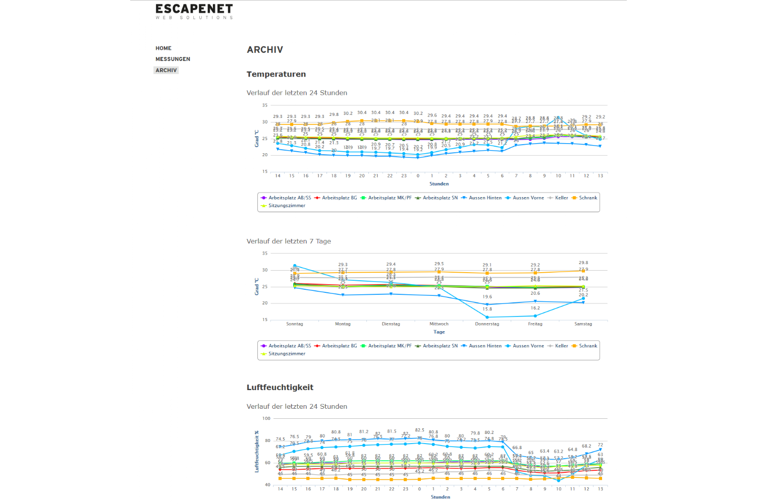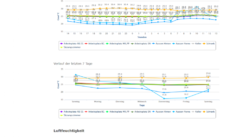 Im "Archiv" lassen sich die vergangenen Messwerte anzeigen sowie Verlaufsdiagramme der Messwerte über die letzten Stunden und Tage.