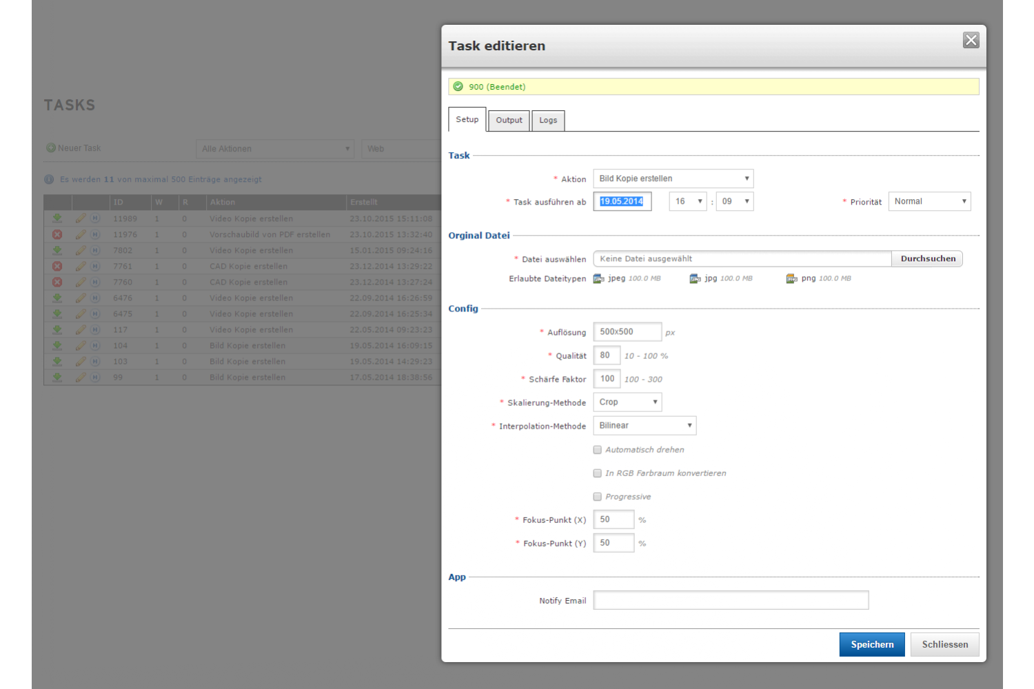 Neben Videos kam dann schnell auch die Möglichkeit der Verarbeitung von Bildern (Erstellung von Bild-Kopien in Auflösung xyz) und den Vorschaubildern von PDF-Dateien (Erstellung von Bild-Dateien bestimmter PDF Seiten) dazu.