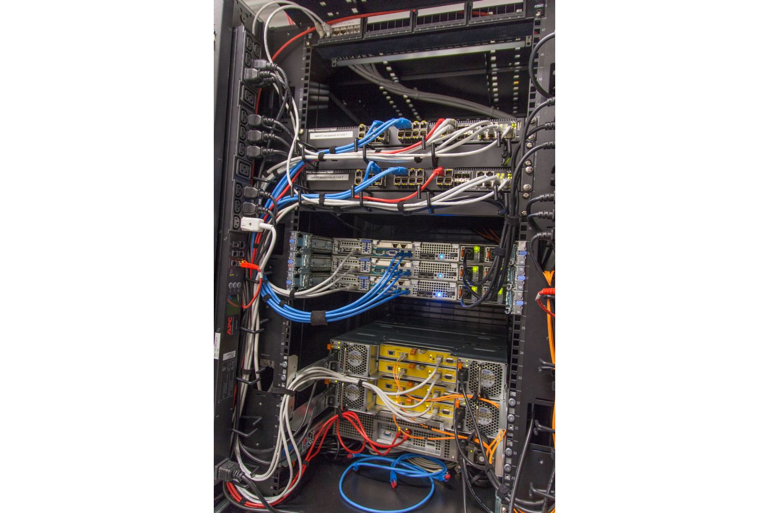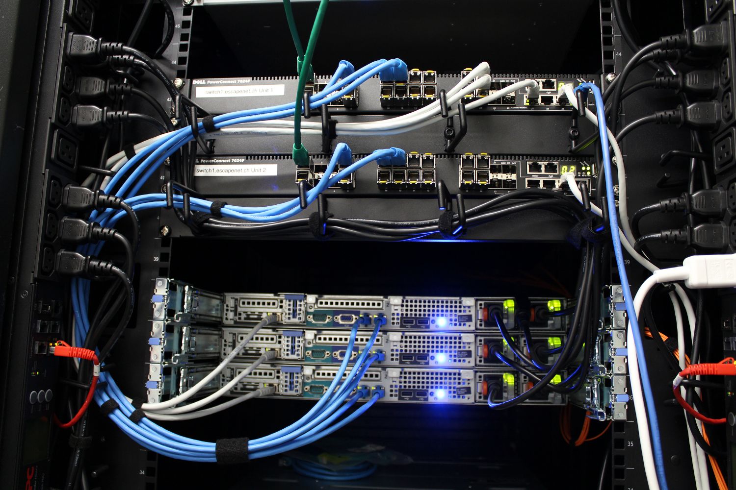Neben der Konfiguration und dem Einbau der Hardware, wurde auch eine saubere, farbcodierte Netzwerkverkabelung umgesetzt.