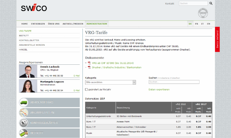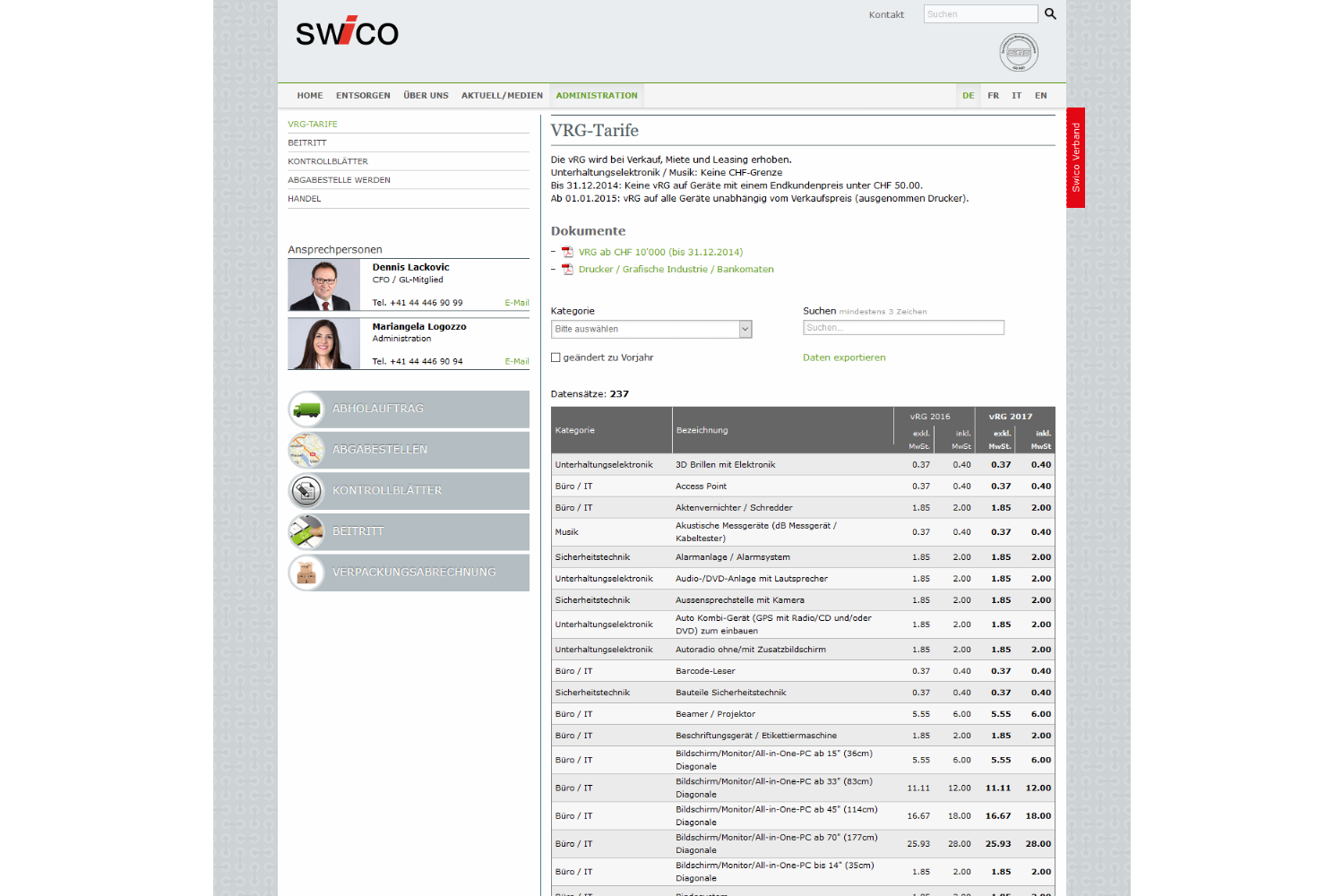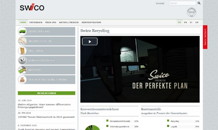 Umsetzung der neuen Swico und Swico Recycling Webseite mit Kombination Themis und kundenspezifischen CMS.