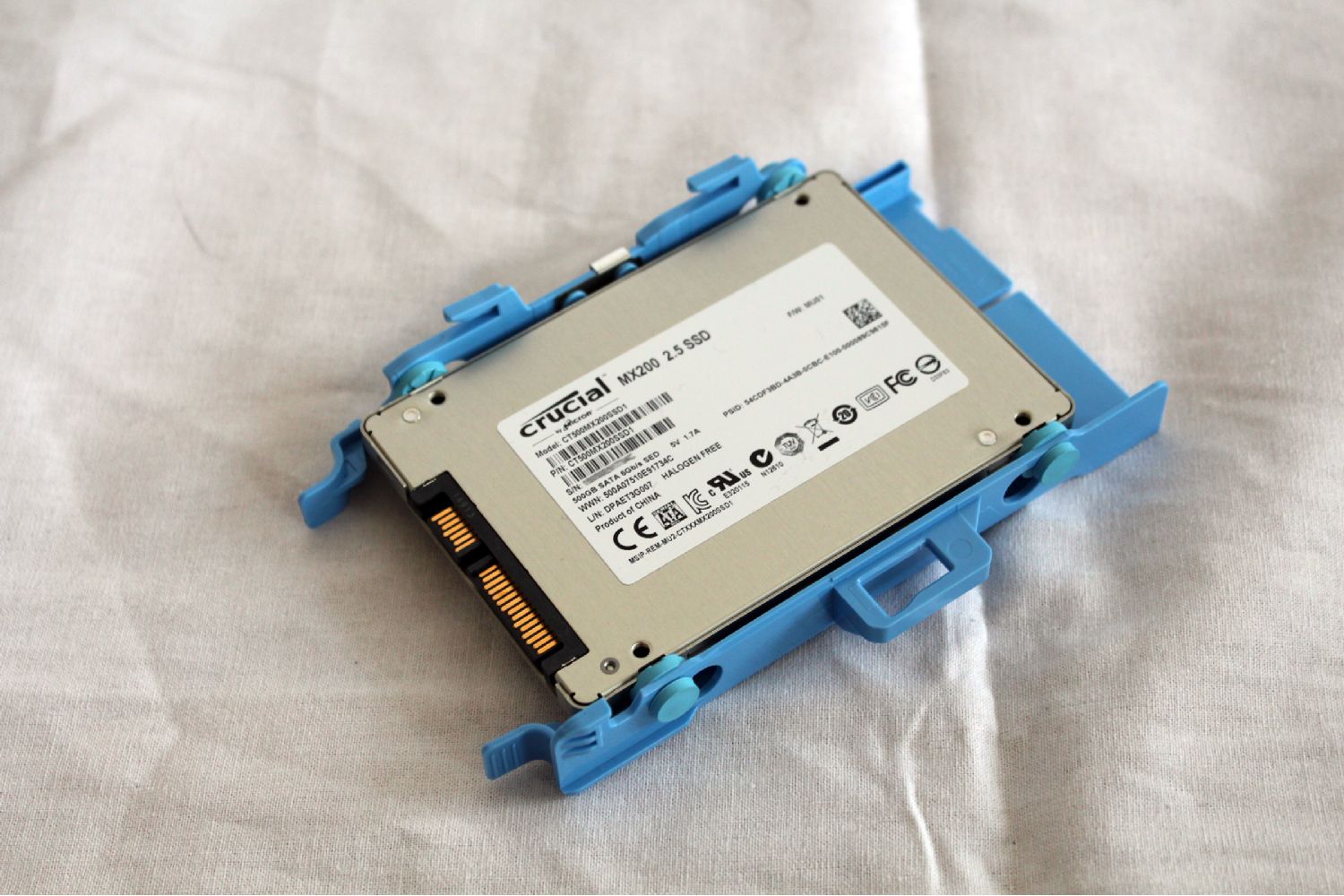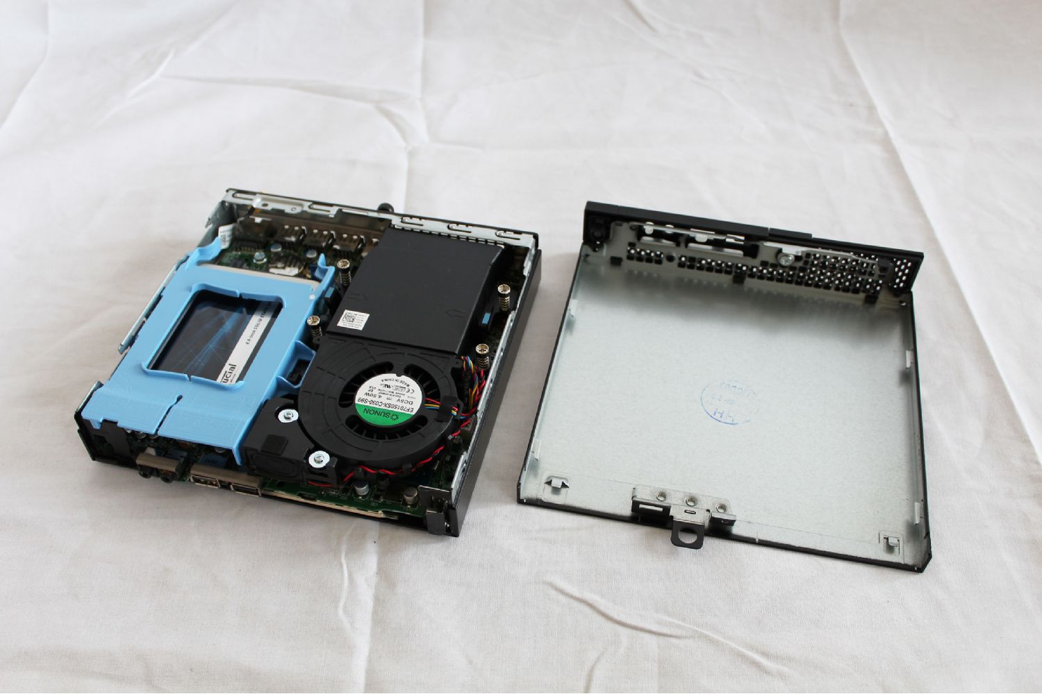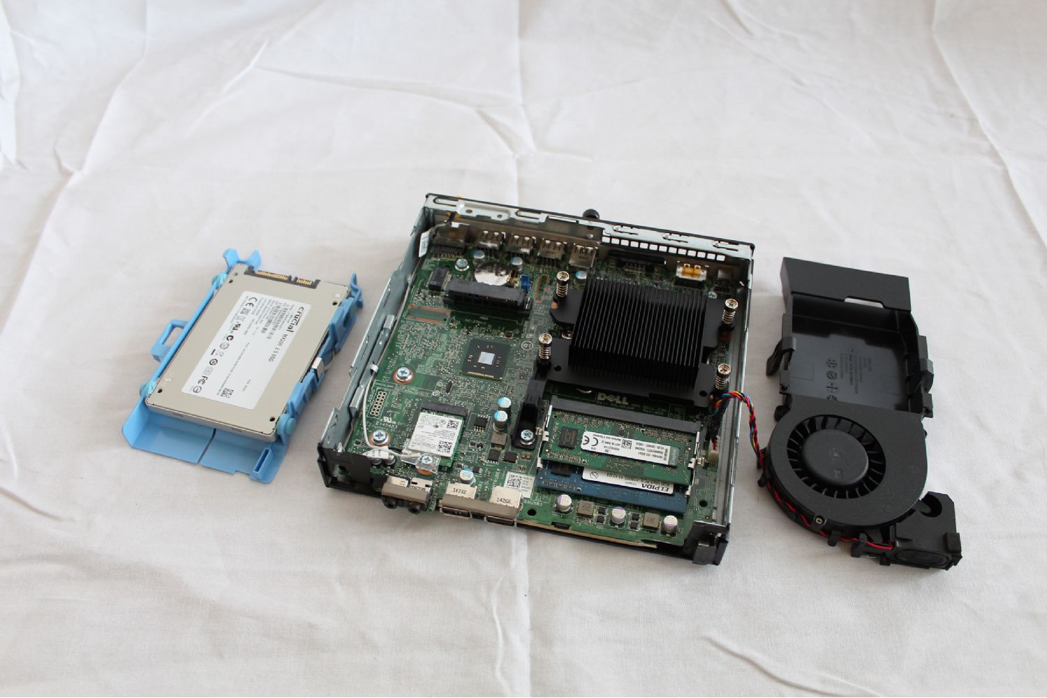Damit der Micro genug Reserven hat und die "Schwubsidität" nicht leidet, habe ich zusätzlich einen zweiten 4 GB RAM Riegel eingebaut (einer von Kingston, der war einiges günstiger als der Orginal Dell RAM) sowie die 500 GB HDD durch eine 500 GB SSD (Crucial MX200) ausgetauscht.