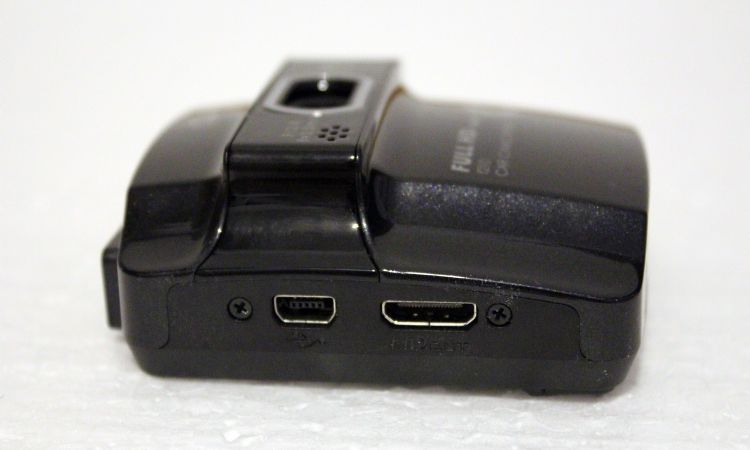 Auf der linken Seite findet man den USB-Mini Anschluss (hier wird auch das Autoladekabel angeschlossen) sowie der Mini HDMI Port mit dem man Aufnahmen direkt auf einem TV oder Monitor wiedergeben könnte.