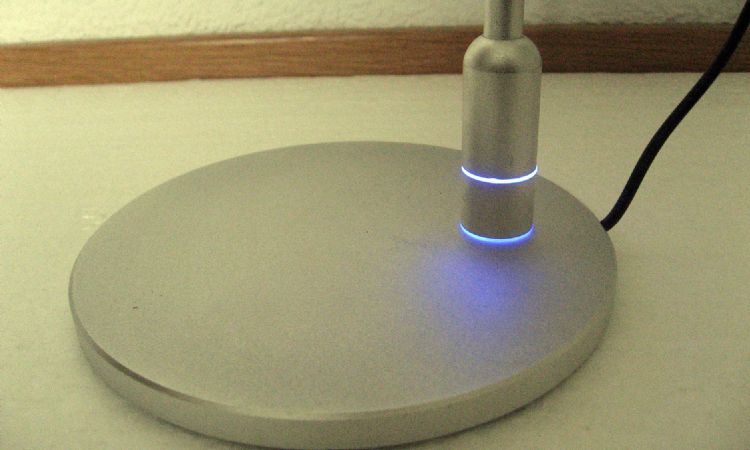 Speziell an der Juby ist, neben dem sehr flachen Kopf mit den LED und dem Schwanenhals, das blaue Orientierungslicht was auch gleichzeitig der Touch Ein- und Ausschalter ist. Man muss bloss mit dem Finger leicht den Bereich berühren und schon leuchtet es - sehr cool.