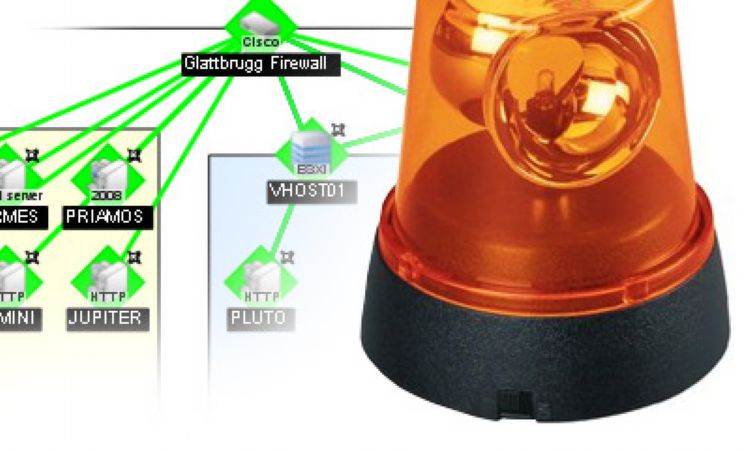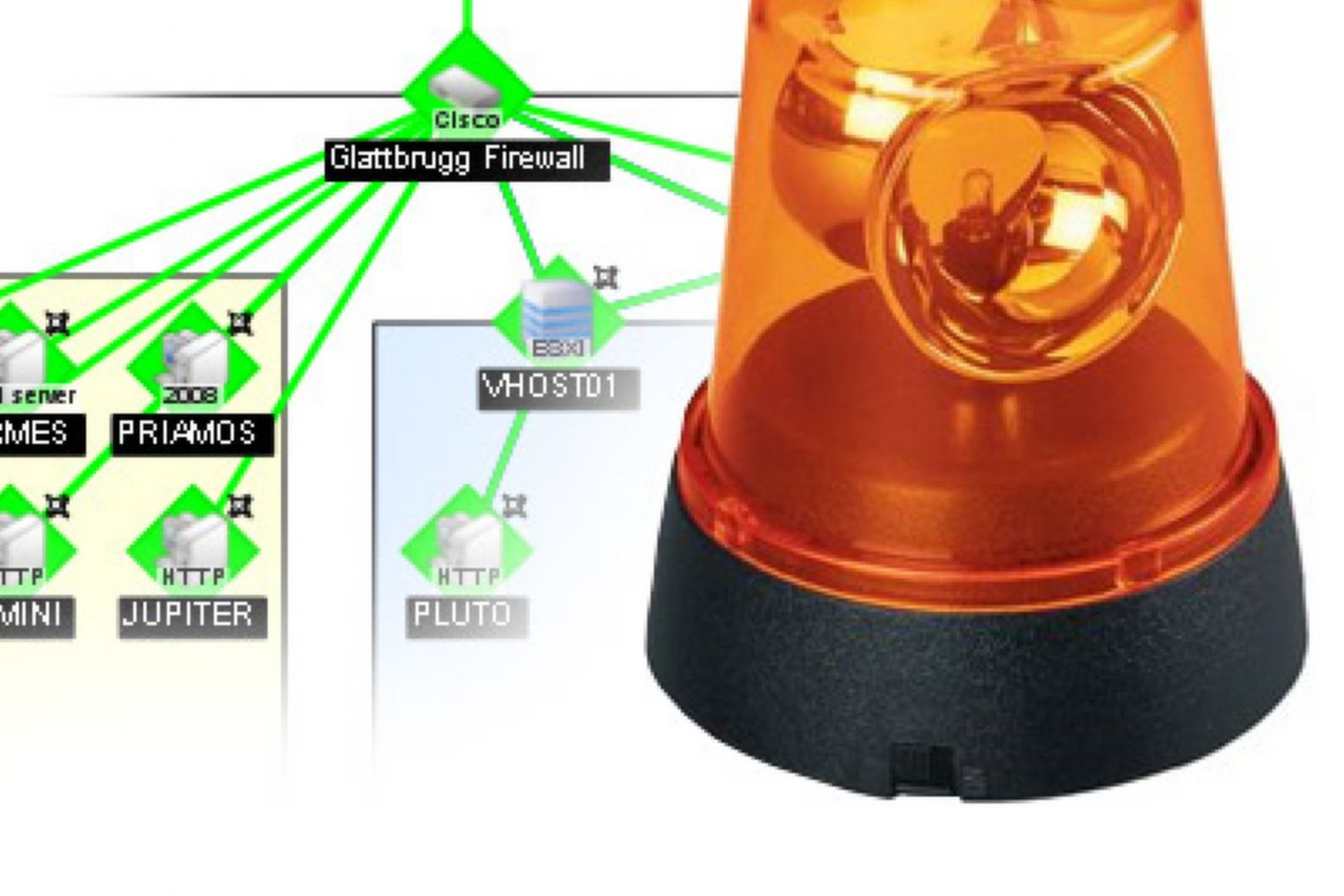 Da unsere Firma ihren Sitz im Winterthurer Sulzer Areal hat und damit rundherum in dichter Industrie-Atmosphäre liegt, hatte ein Arbeitskollege und ich vor einiger Zeit den verrückte Plan dass wenn irgendwas im Netzwerk im argen liegt, ein Drehlicht angehen soll - wie in der echten Industrie eben.