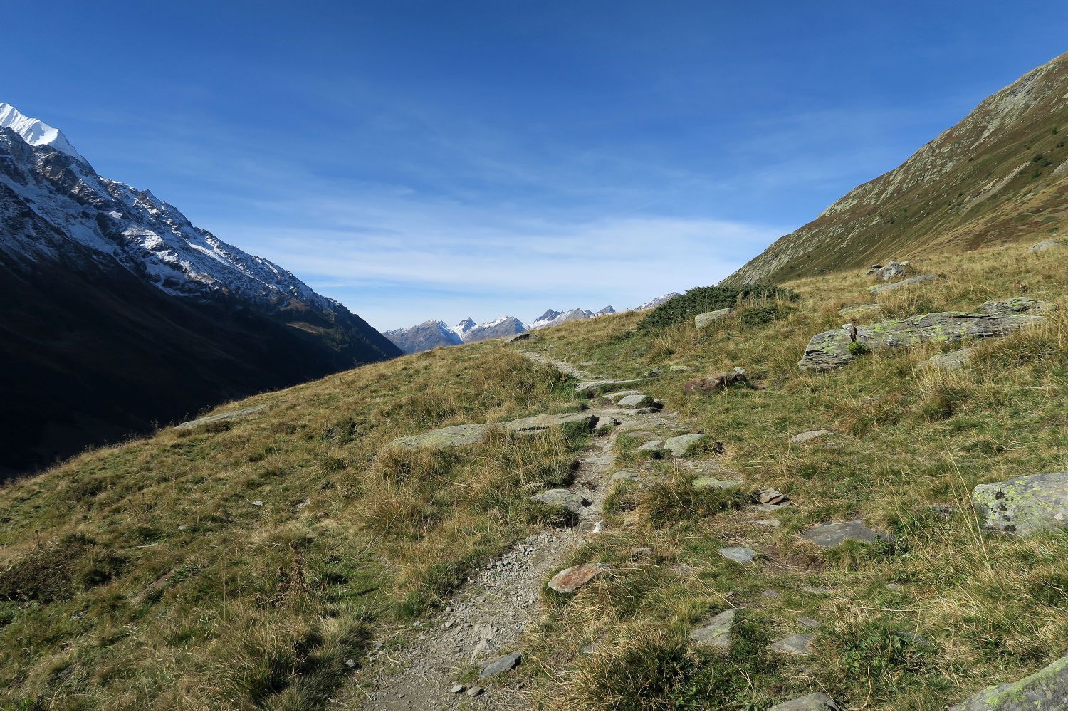 Wetter: Morgens 0930 mit rund 5 Grad, Nachmittag 12 Grad (an Sonne ca 20 Grad). Blauer weitgehend wolkenfreier Himmel.
